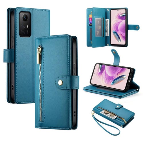Funda de Cuero para Teléfono Redmi Note 11S 4G con Nueve Ranuras para Tarjetas y Cremallera (Azul)