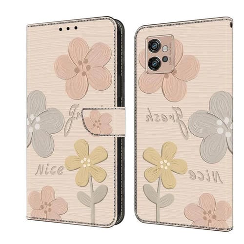 Funda de Cuero Pintada a Mano Motorola Moto G32 Protección (Flores Beige)