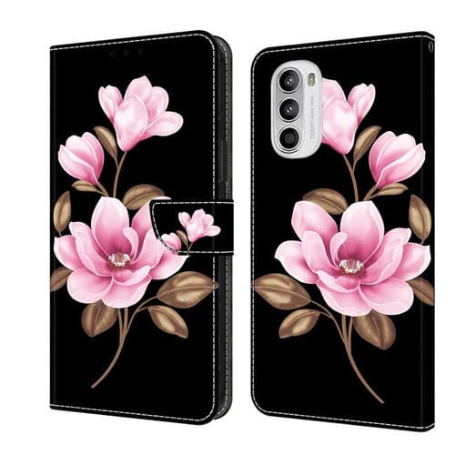 Funda de Cuero Pintada a Mano para Motorola Moto G52 (Flores Negras)