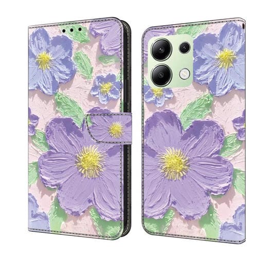 Funda de Cuero Pintada a Mano para Redmi Note 13 4G (Pintura al Óleo de Flores Moradas)