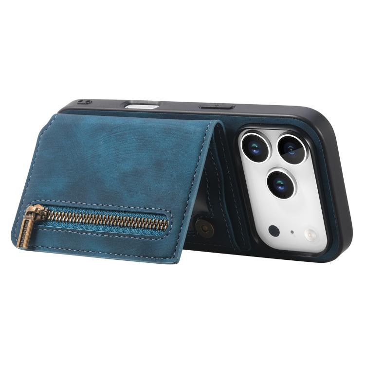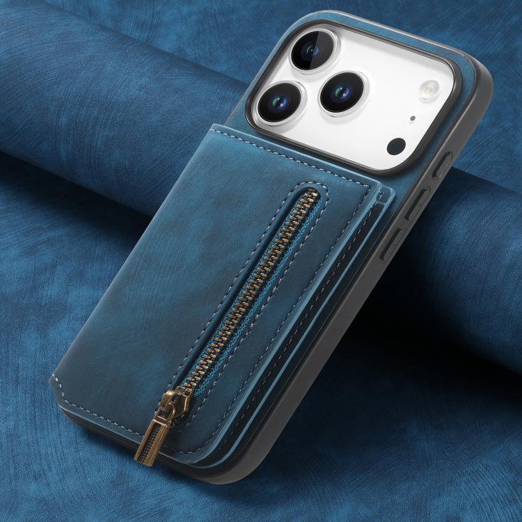 Funda de cuero retro con cremallera para iPhone 17 Pro Max (azul)