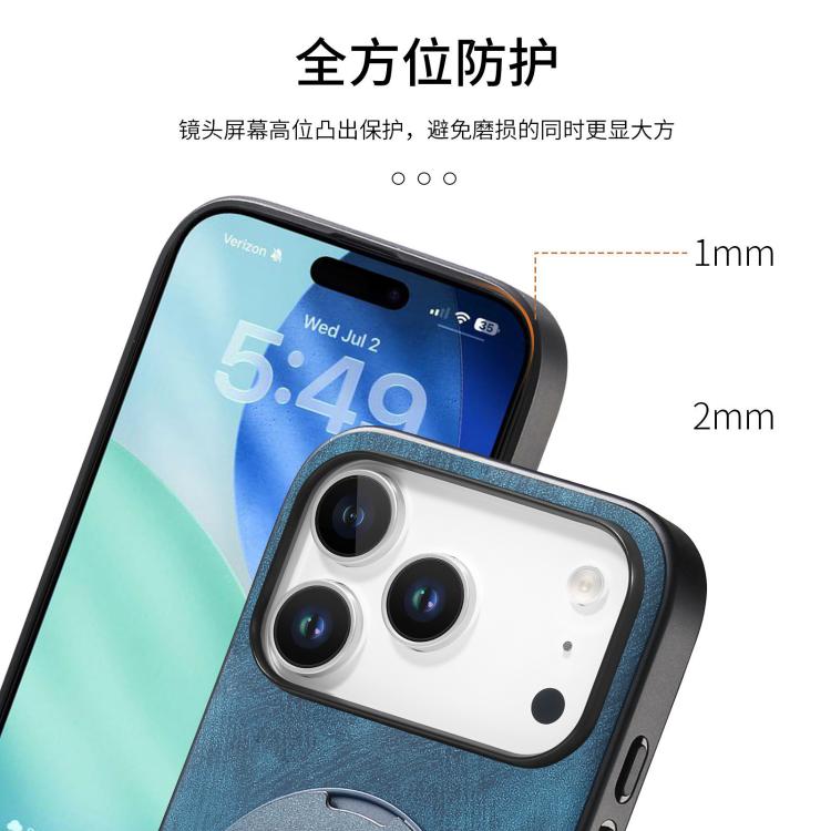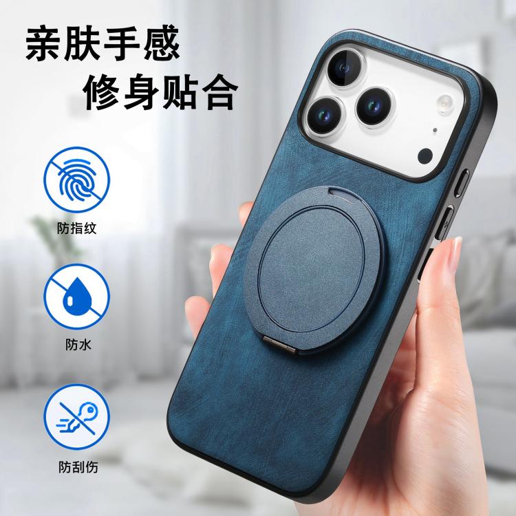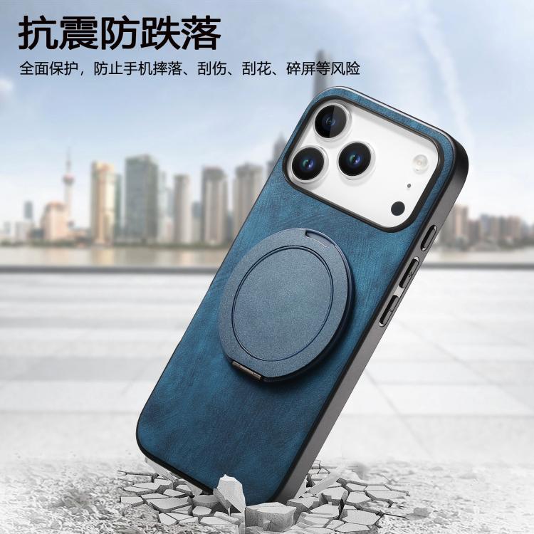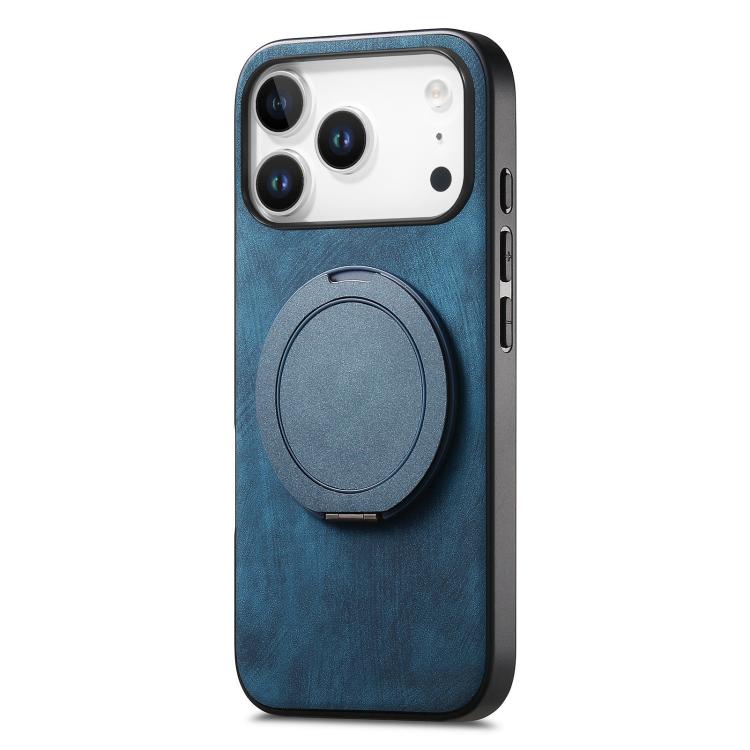 Funda de cuero retro con soporte giratorio redondo para iPhone 17 Pro (azul)