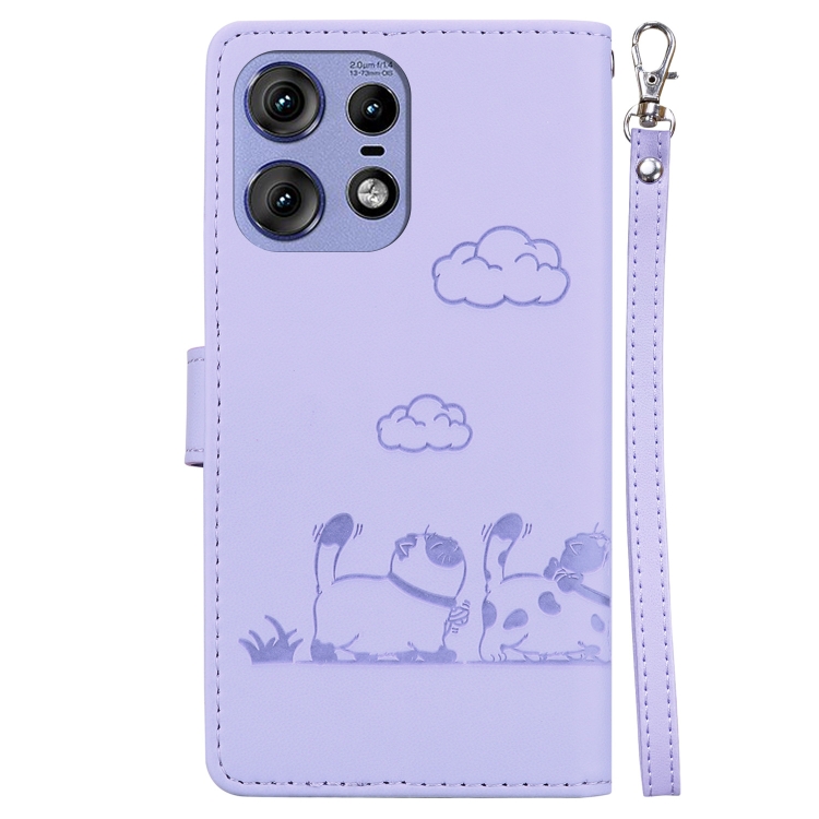 Funda de Cuero Rfid para Motorola Edge 50 Pro con Diseño de Gatos (Morado)