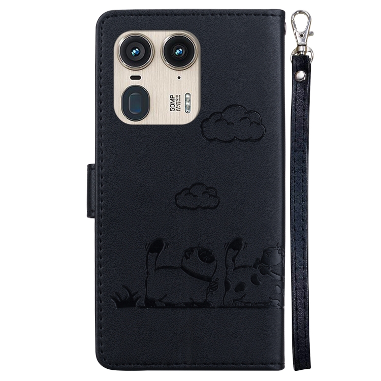 Funda de Cuero Rfid para Motorola Edge 50 Ultra con Diseño de Gatos (Negra)