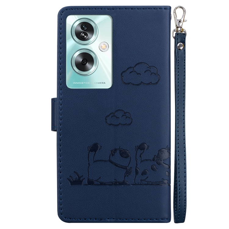 Funda de Cuero Rfid con Diseño de Gatos para Oppo A79 5G Global (Azul)