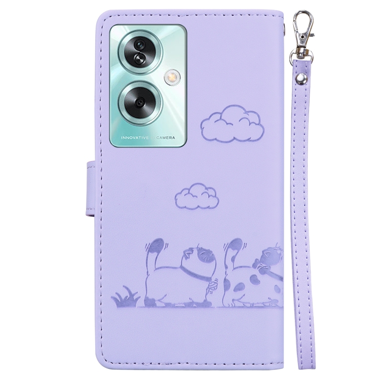 Funda de Cuero Rfid con Diseño de Gatos para Oppo A79 5G Global (Morado)