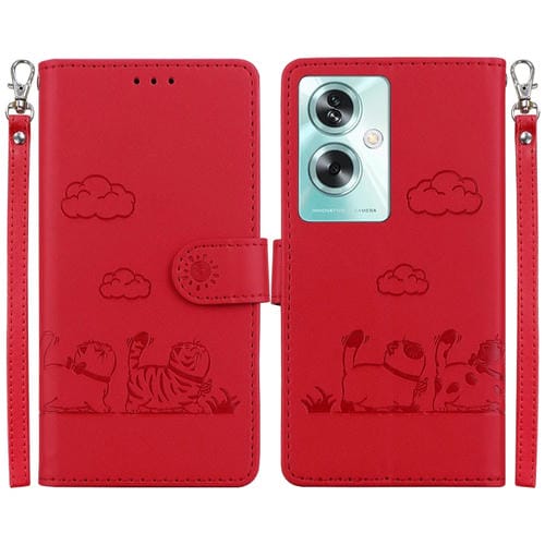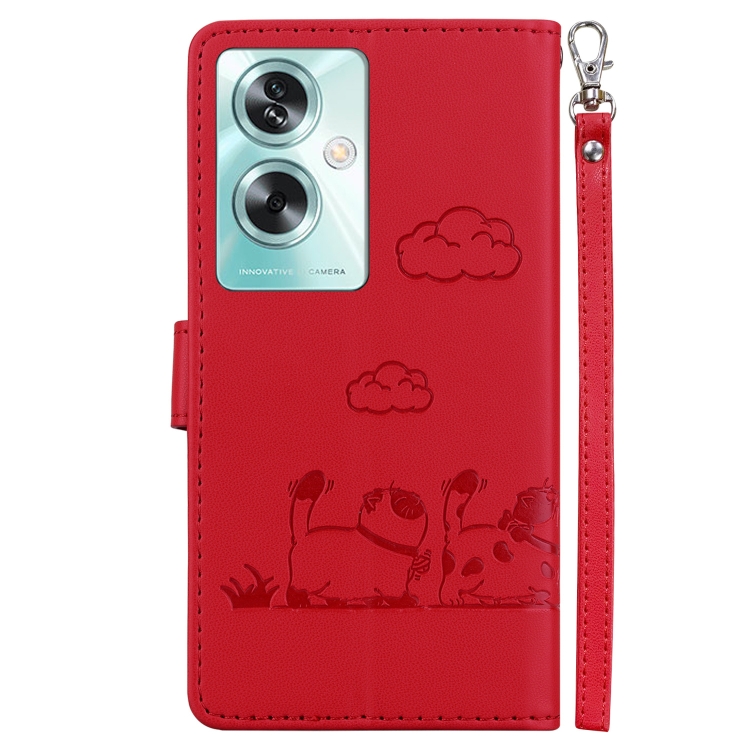 Funda de Cuero Rfid con Diseño de Gatos para Oppo A79 5G Global (Roja)