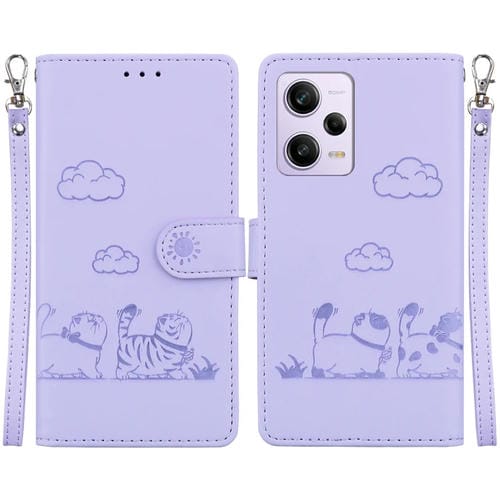 Funda de Cuero Rfid con Diseño de Gatos Lindos para Redmi Note 12 Pro 5G (Morada)