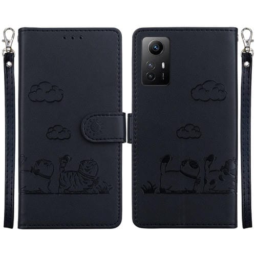 Funda de Cuero Rfid con Diseño de Gatos para Redmi Note 12S (Negra)