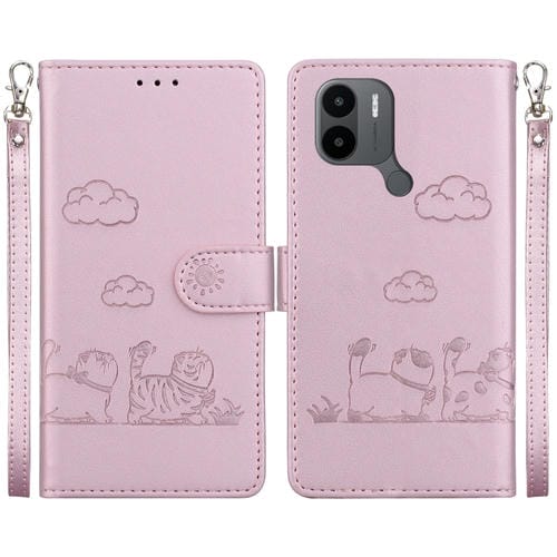 Funda de Cuero Rfid con Diseño de Gatos para Xiaomi Poco C50 (Oro Rosa)
