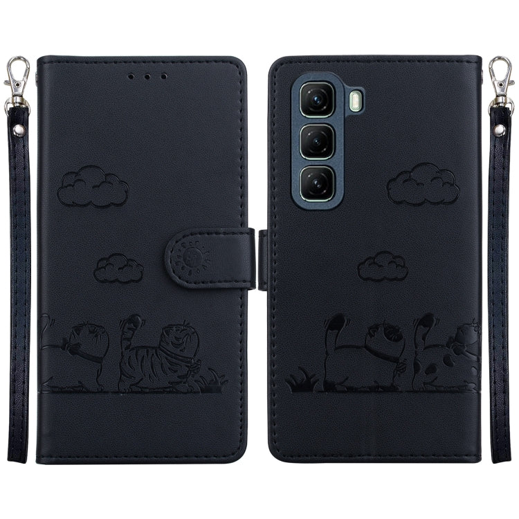 Funda de Cuero Rfid para Infinix Hot 50 4G con Diseño de Gatos (Negra)