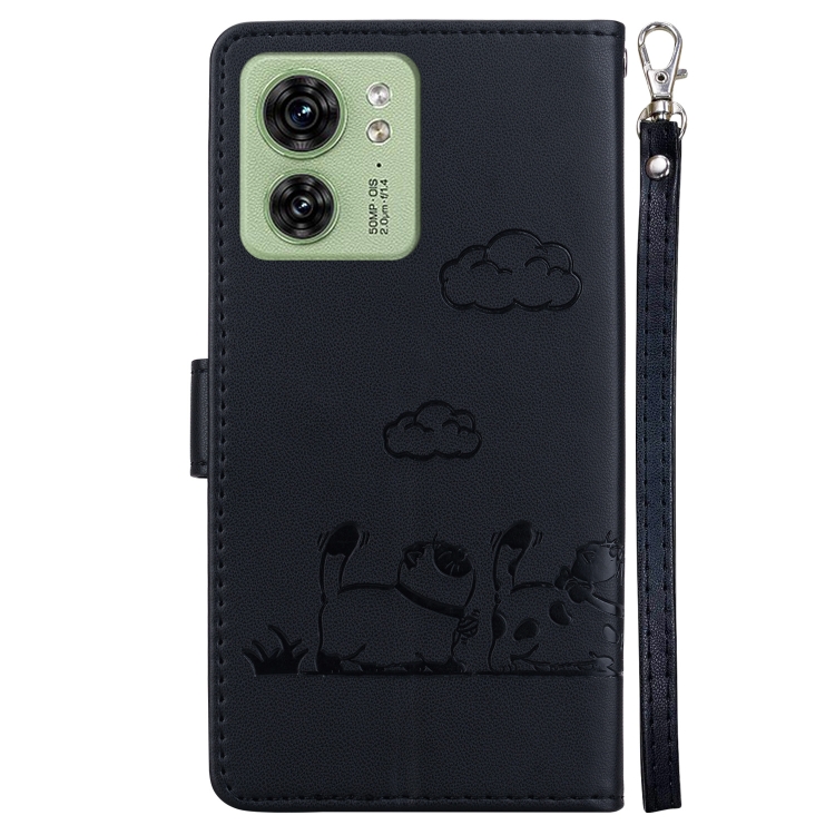 Funda de Cuero Rfid para Motorola Edge 40 con Diseño de Gatos (Negra)