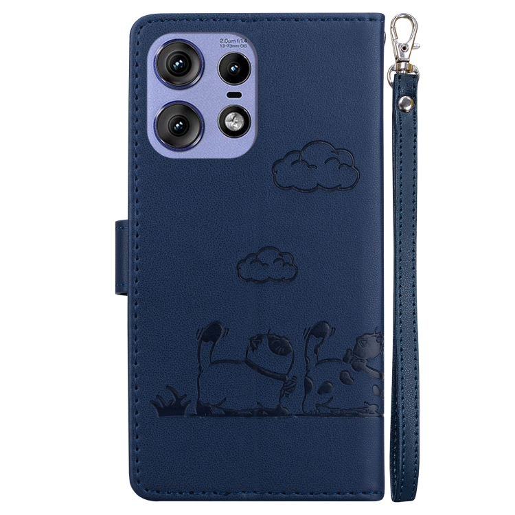 Funda de Cuero Rfid para Motorola Edge 50 Pro con Diseño de Gatos (Azul)