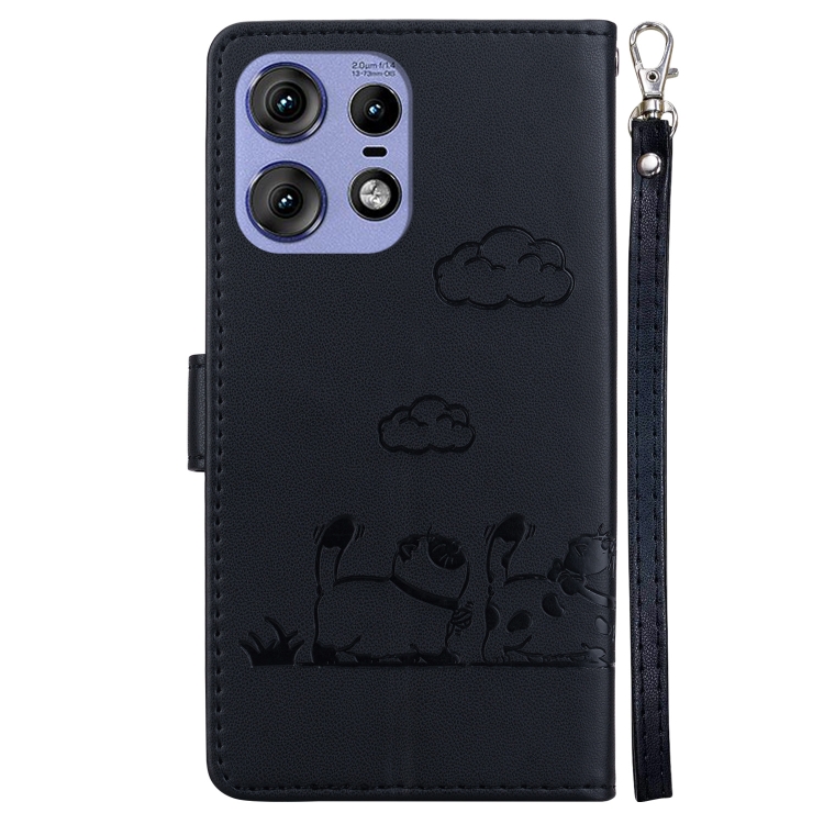 Funda de Cuero Rfid para Motorola Edge 50 Pro con Diseño de Gatos (Negra)