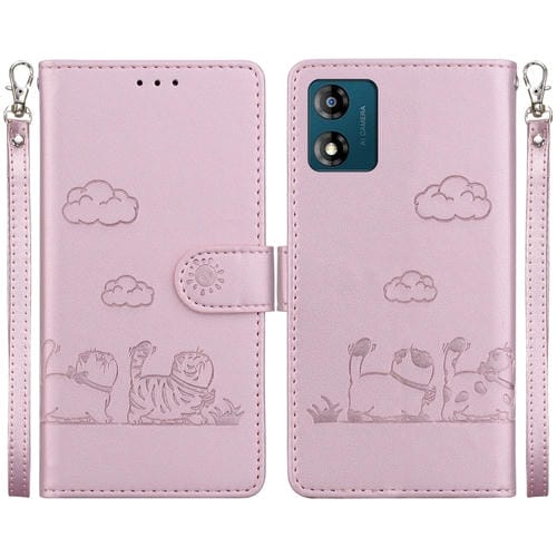 Funda de Cuero Rfid Motorola Moto E13 con Diseño de Gatos (Oro Rosa)