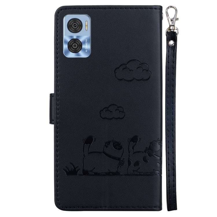 Funda de Cuero Rfid para Motorola Moto E22/E22I con Diseño de Gatos (Negra)