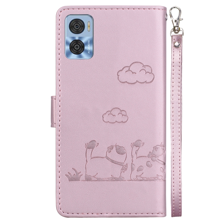 Funda de Cuero Rfid para Motorola Moto E22/E22I con Diseño de Gatos (Oro Rosa)