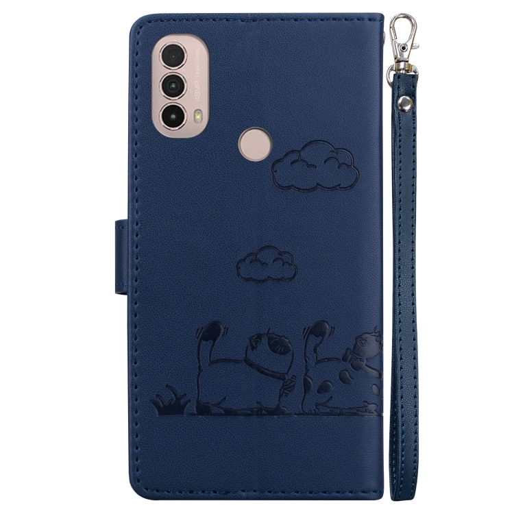Funda de Cuero Rfid para Motorola Moto E40/E30/E20 con Diseño de Gatos (Azul)