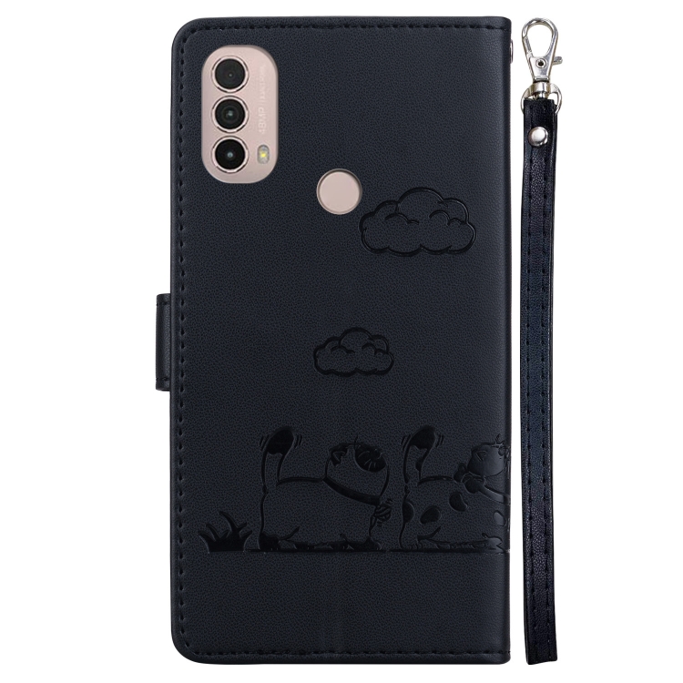 Funda de Cuero Rfid para Motorola Moto E40/E30/E20 con Diseño de Gatos (Negra)