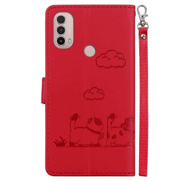 Funda de Cuero Rfid para Motorola Moto E40/E30/E20 con Diseño de Gatos (Rojo)