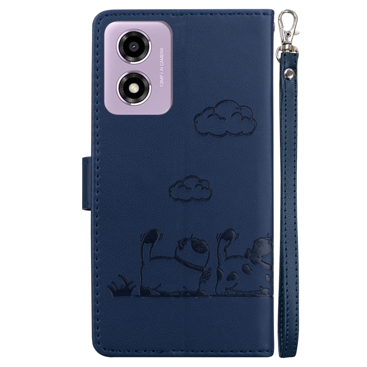 Funda de Cuero Rfid para Motorola Moto G04S/E14 con Diseño de Gatos (Azul)