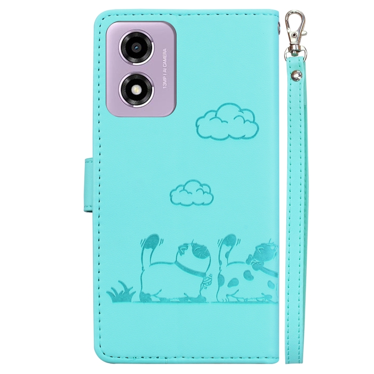 Funda de Cuero Rfid para Motorola Moto G04S/E14 con Diseño de Gatos (Verde)