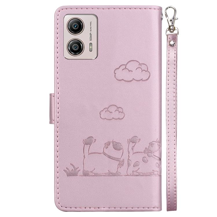 Funda de Cuero Rfid para Motorola Moto G13/G23/G53 con Diseño de Gatos (Oro Rosa)