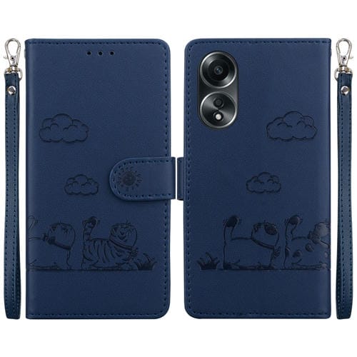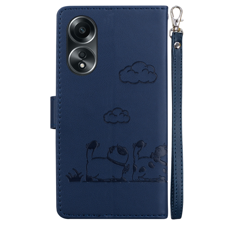 Funda de Cuero Rfid con Diseño de Gatos para Oppo A58 4G (Azul)