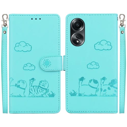 Funda de Cuero Rfid con Diseño de Gatos para Oppo A58 4G (Verde)