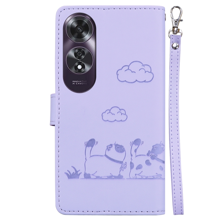 Funda de Cuero Rfid con Diseño de Gatos para Oppo A60 4G (Morada)