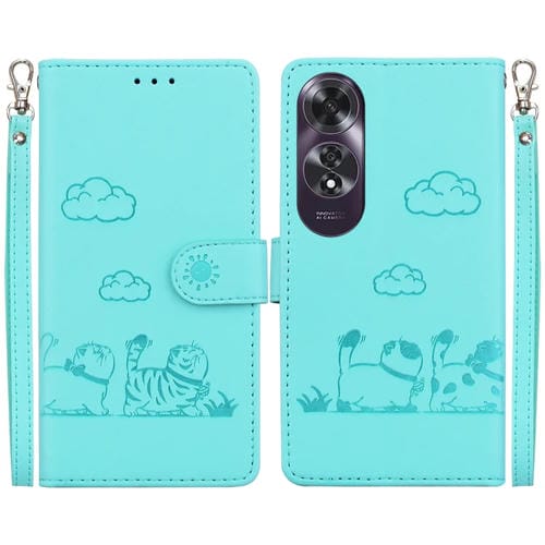 Funda de Cuero Rfid con Diseño de Gatos para Oppo A60 4G (Verde)