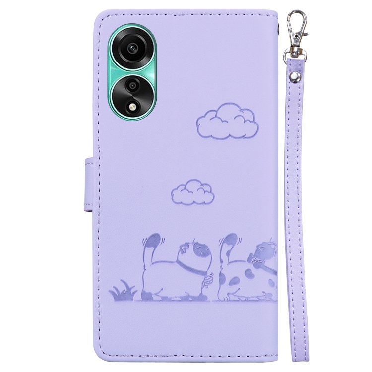 Funda de Cuero Rfid con Diseño de Gatos para Oppo A78 4G (Morada)
