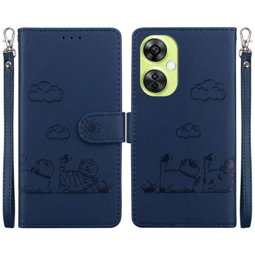 Funda de Cuero Rfid con Diseño de Gatos para Oppo K11X (Azul)
