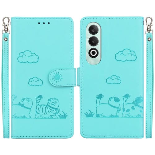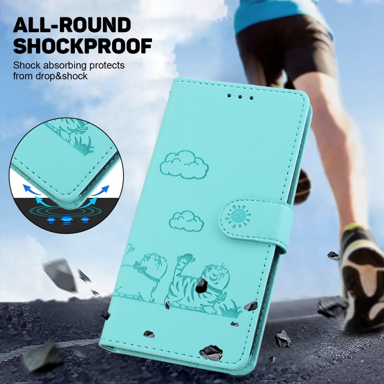 Funda de Cuero Rfid con Diseño de Gatos para Oppo K12 (Verde)