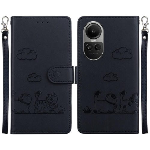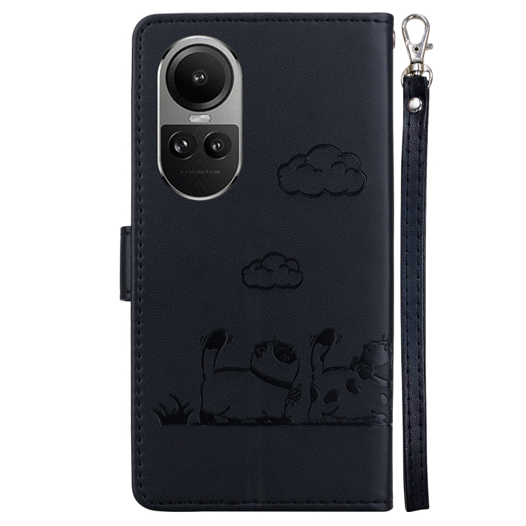 Funda de Cuero Rfid con Diseño de Gatos para Oppo Reno10 5G (Negra)