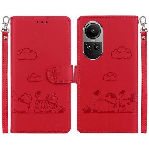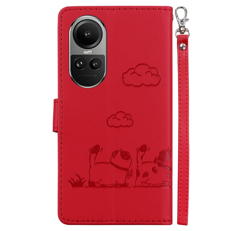 Funda de Cuero Rfid con Diseño de Gatos para Oppo Reno10 5G (Roja)