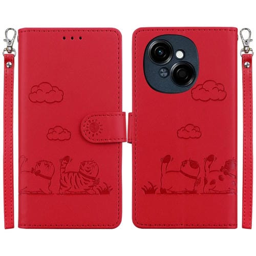 Funda de Cuero Rfid para Tecno Spark Go 1 Pop 9 con Diseño de Gatos (Rojo)