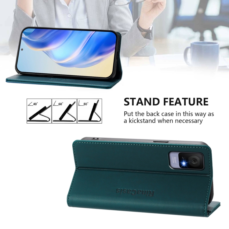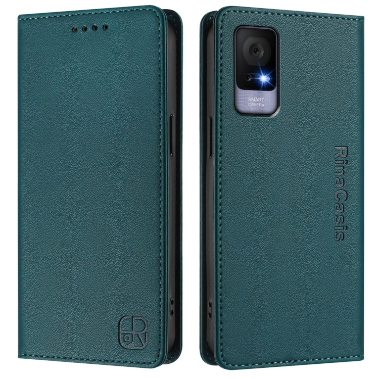 Funda de Cuero Rfid con Doble Pliegue y Succión Magnética para TCL 405/406/408 Rc01 (Verde Oscuro)