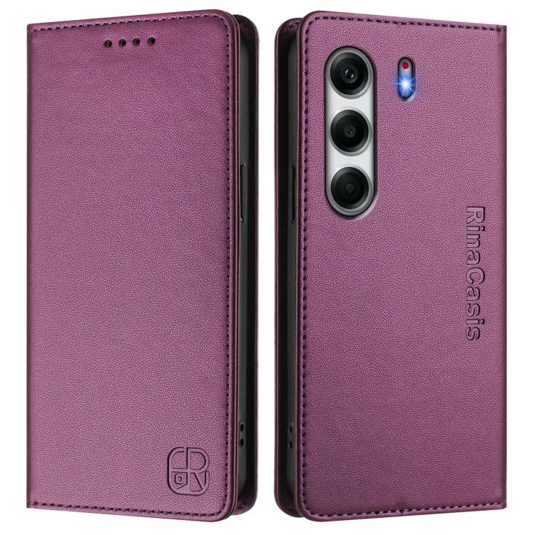 Funda de Cuero Rfid para Tecno Camon 40 4G Rc01 con Doble Pliegue y Succión Magnética (Violeta)