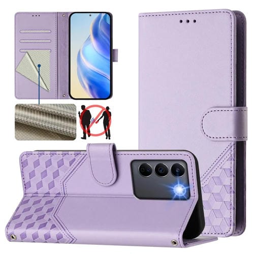Funda de Cuero Rfid con Relieve de Panal Global para Vivo V27 5G/V27 Pro 5G (Morado Claro)
