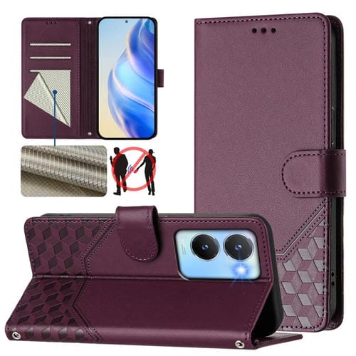 Funda de Cuero Rfid con Relieve de Panal Global para Vivo Y56 5G / Y16 4G / Y02S 4G (Violeta)