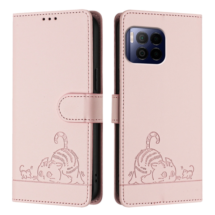 Funda de Cuero Rfid con Relieve de Rata de Gato para T-Mobile Revvl 7 Pro 5G con Cordón (Rosa)