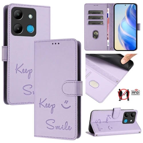 Funda de Cuero Rfid con Relieve de Sonrisa para Teléfono Infinix Smart 7 (Morado Claro)