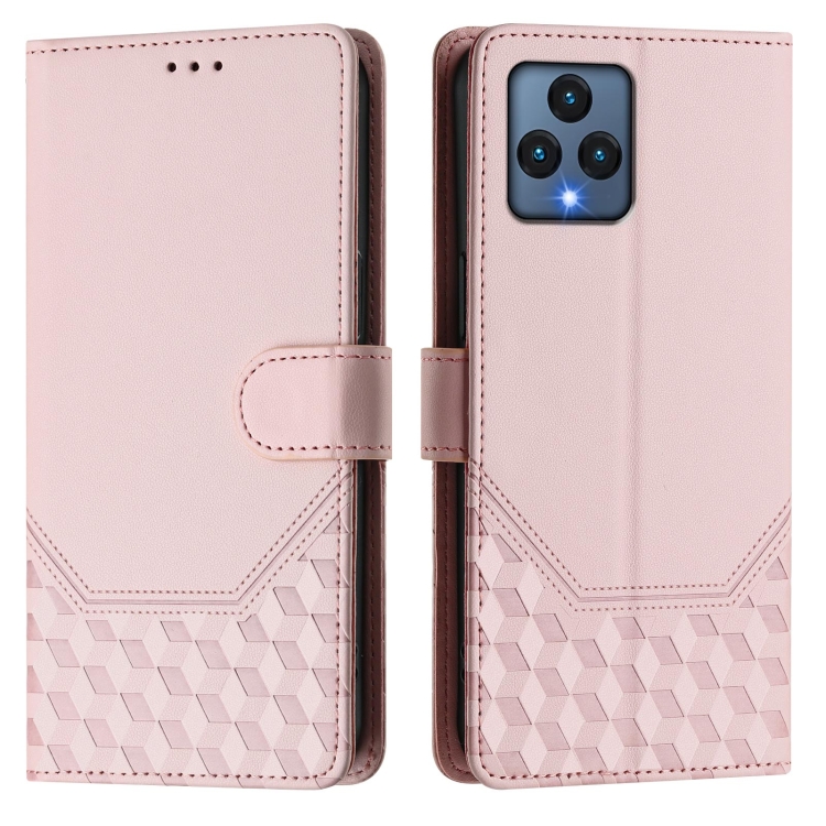 Funda de Cuero Rfid con Relieve en Panal para T-Mobile Revvl 6 5G/6X 5G (Rosa)