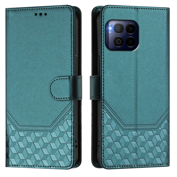 Funda de Cuero RFID con Relieve en Panal para T-Mobile Revvl 7 Pro (Verde Pavo Real)