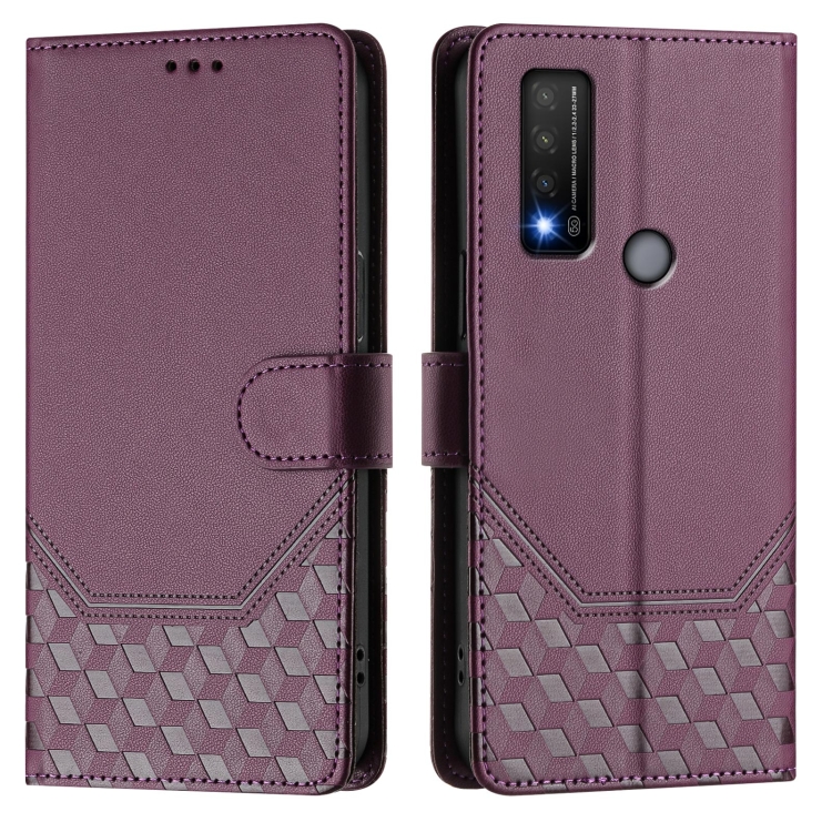Funda de Cuero Rfid con Relieve en Panal para TCL 20R (Violeta)