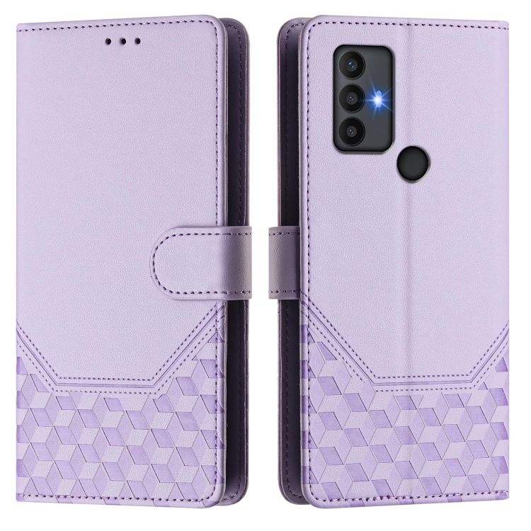 Funda de Cuero Rfid con Relieve en Panal para TCL 30 Se (Morado Claro)