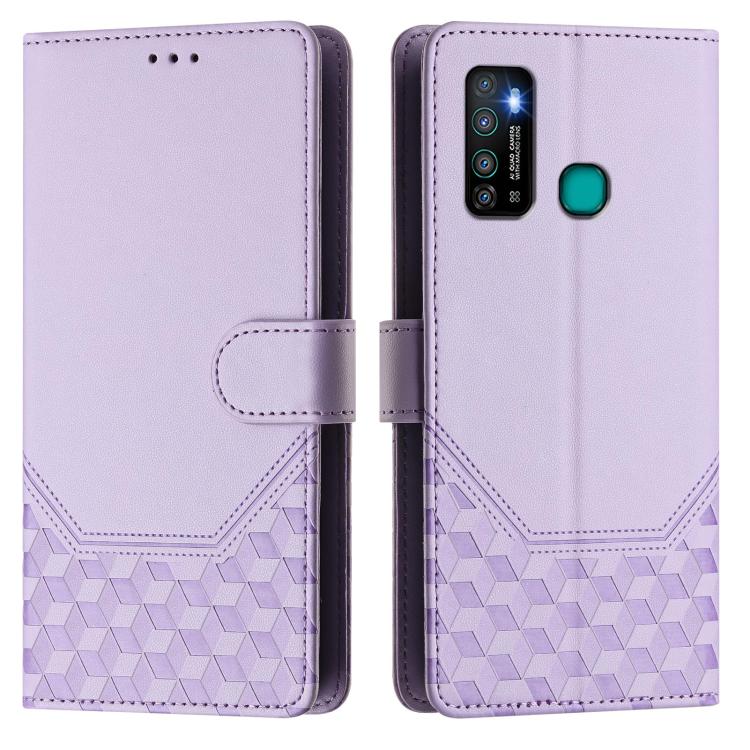 Funda de Cuero Rfid con Relieve en Panal para Tecno Camon 15/15 Air (Morado Claro)