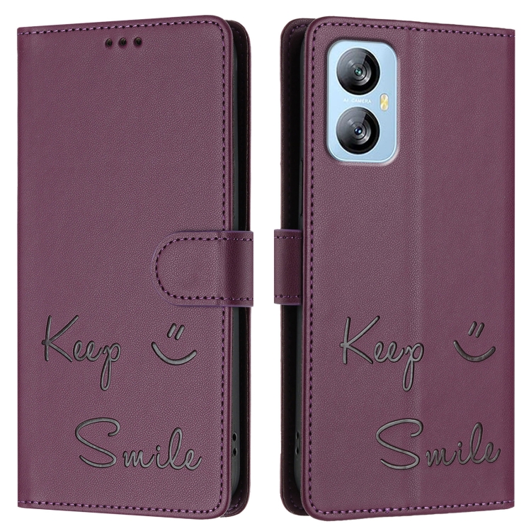 Funda de Cuero Rfid con Relieve Smile para BlackView A52 (Violeta)