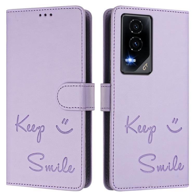 Funda de Cuero Rfid con Relieve Smile para Teléfono For Honor Gt (Morado Claro)